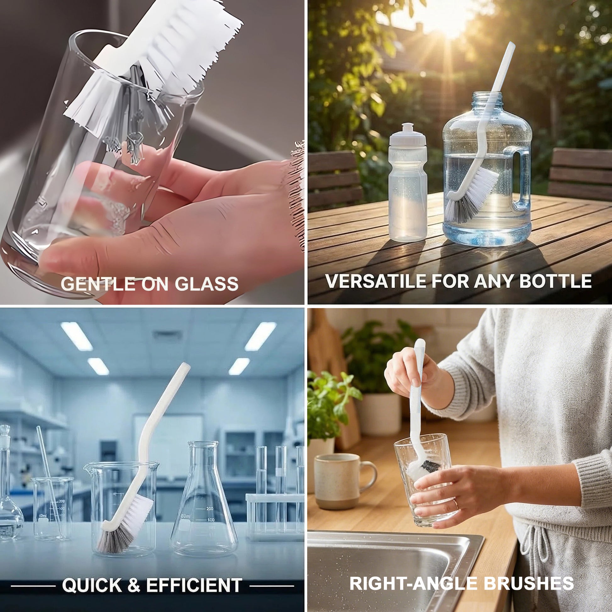2 Right-Angle Bottle Brushes: Ideal for deep cleaning blenders, water bottles, teapots, and narrow-neck containers.