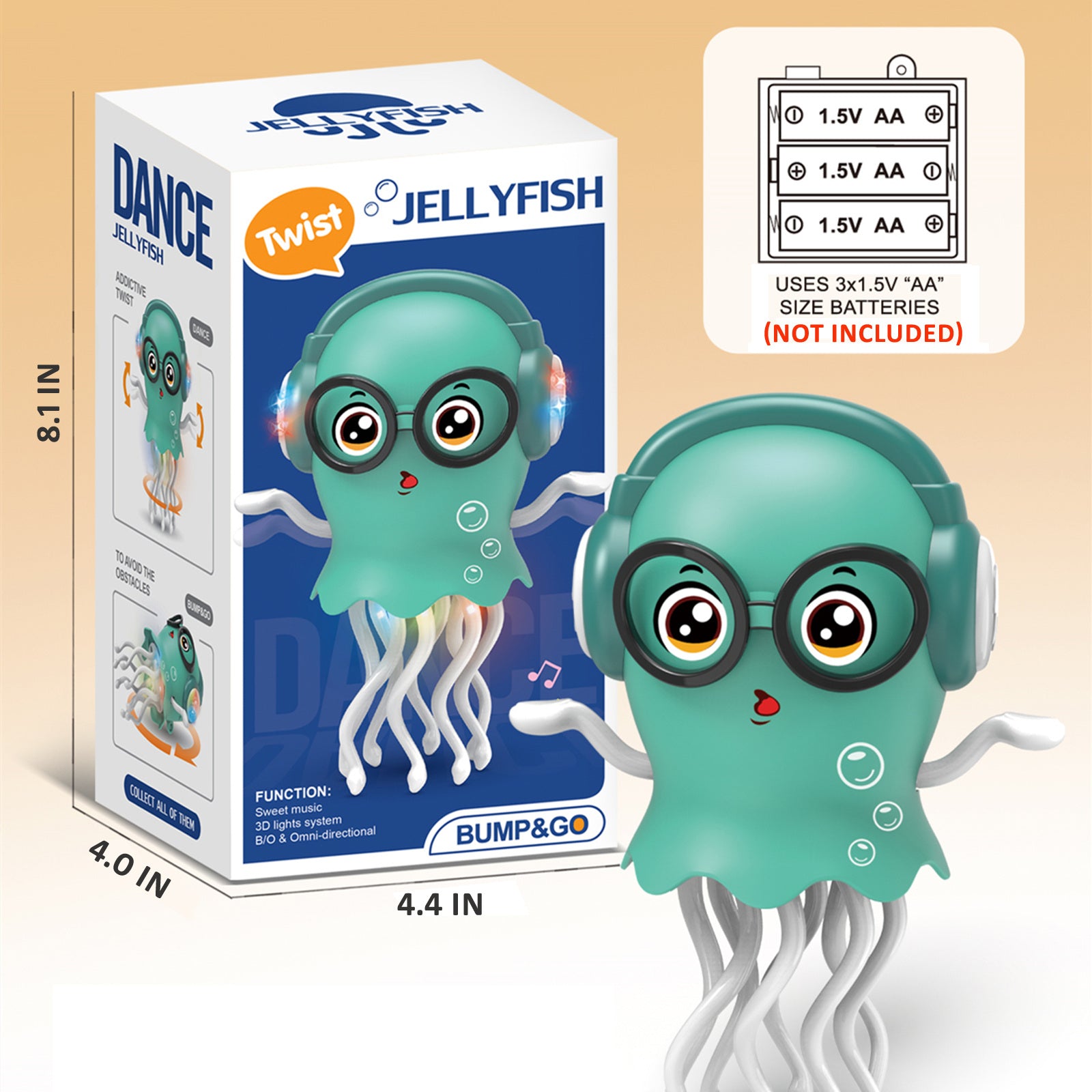 - Lights, Music & Dance Show: Watch this adorable jellyfish come alive with vibrant 3D LED lights and cheerful music! Its arms and glasses swing while tentacles rotate 360°, encouraging visual tracking and sensory development.