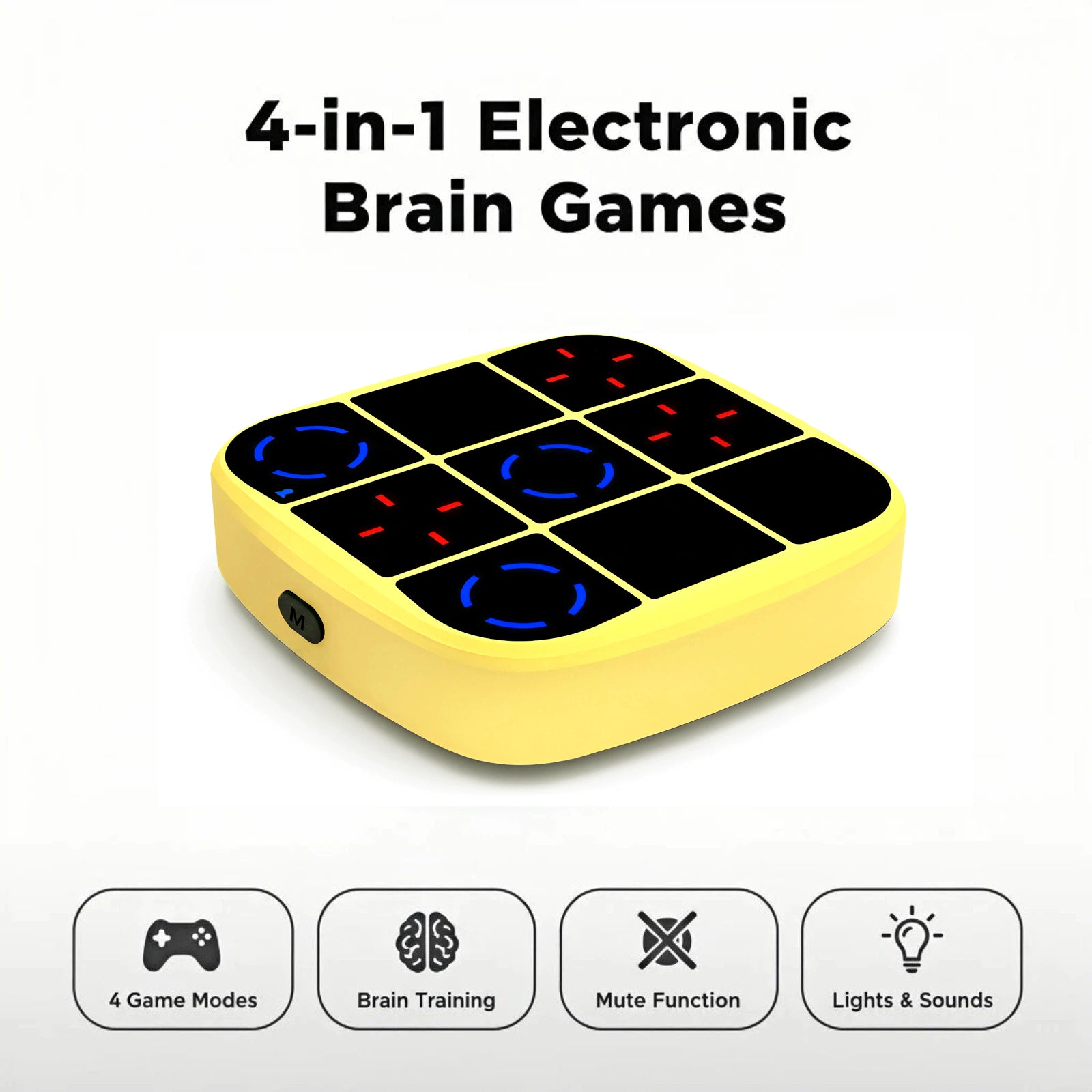 DIDUBUY Electronic Tic Tac Toe Game, Upgraded 4-in-1 Handheld Digital Puzzle Game Console, Portable Travel Toys, Ideal Gift for Kids of All Ages, Yellow